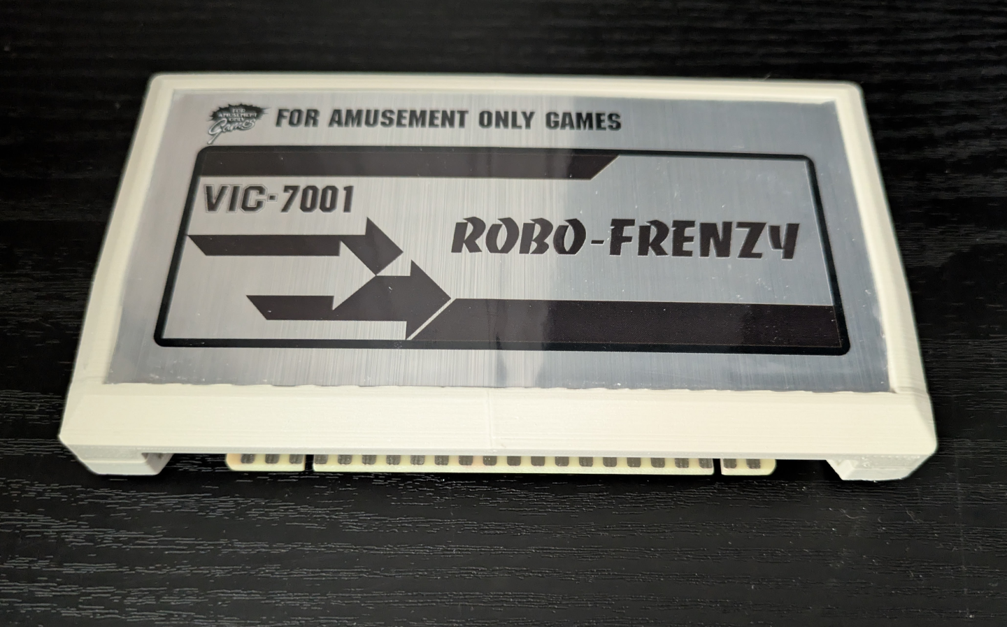 After completing the datasette version of the intro and game, I worked to manufacture cartridges that would work with the VIC-20. I had compatible cartridge PCBs manufactured, and burned the cartridge ROM. I printed some cartridge housings, made cartridge stickers, and manufactured, tested, and boxed a run of physical carts.